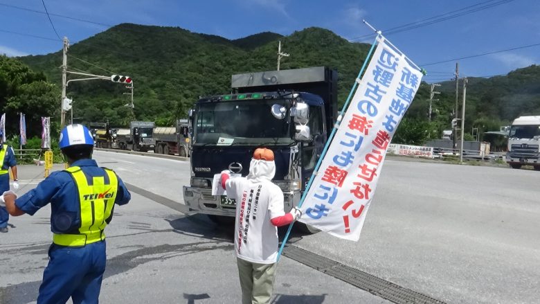 소수의 인원이기는 하나, 부두의 출구와 입구로 나눠져 토사를 반입하는 덤프차를 향해 항의를 계속했다. GoGo드라이브 멤버 7명도 가세하여 덤프차들의 운행을 늦추었다. 한때 덤프 수십 대가 부두에 갇히는 사태가 되었다.