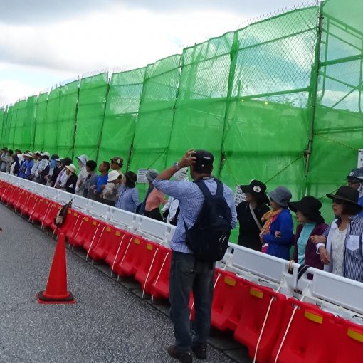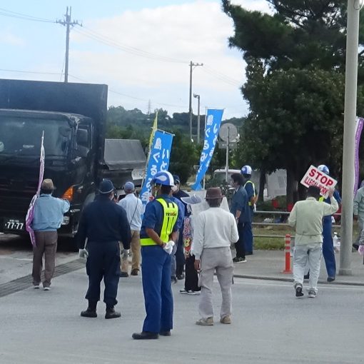오키나와 현내에서의 코로나19 감염자 급증에 따라 ‘올 오키나와’로서의 항의 행동은 중지되었으나 캠프 슈워브 게이트 앞, 아와 부두, 시오카와항에는 각각 열 명 가량이 모여 항의 시위를 이어갔다.아와 부두에서 덤프차 828대분의 토사가 운반선에, 시오카와항에서는 442대분의 토사가 바지선에 실려졌다.항의 시위에 참가한 한 사람은 “오키나와현이 긴급 사태 선언을 발표했음에도 불구하고 왜 공사를 게속하는가? 또 기지 안에서 감염자를 나오게 할 셈인가?”라고 화를 드러냈다.
