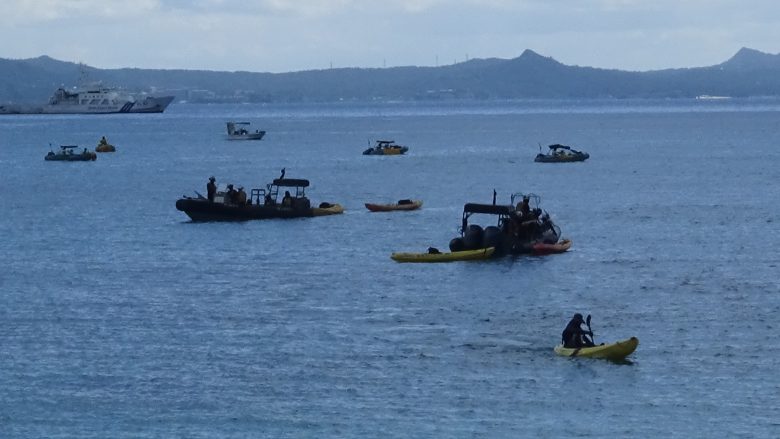 약 20명이 아침 8시 40분부터 게이트 앞에 눌러 앉았다. 오키나와 방위국이 현에 제출한 설계변경신청서의 내용의 허술함에 대해 의견이 활발하게 오고갔다. 더군다나 어제 방위국이 연약지반 개량공사에는 최대 100척의 작업선이 오우라만에 집결할 것을 밝힌 것에 대해 “지금도이렇게 혼잡한데 있을 수가 없는 일이다 ” 등의 비판이 끊이지 않았다.