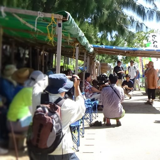 오키나와로 자주 찾아와 모토부(本部)나 나고(名護)시민들과 교류를 계속해 왔다. “운동을 하는 가운데 가장 기쁜 것은 인간 관계를 맺는 것이다” 고 에츠코 씨는 힘주어 말했다. 앞으로도 가고시마(鹿児島), 구마모토(熊本)등 후보지로 남은 곳을 찾아 반대하자고 연대를 호소할 예정이다. 함께 만들어 낸 운동의 표어, “어느 고향에도 전쟁에 사용하는 토사는 한 톨도 없다”를 가슴에 담으면서.