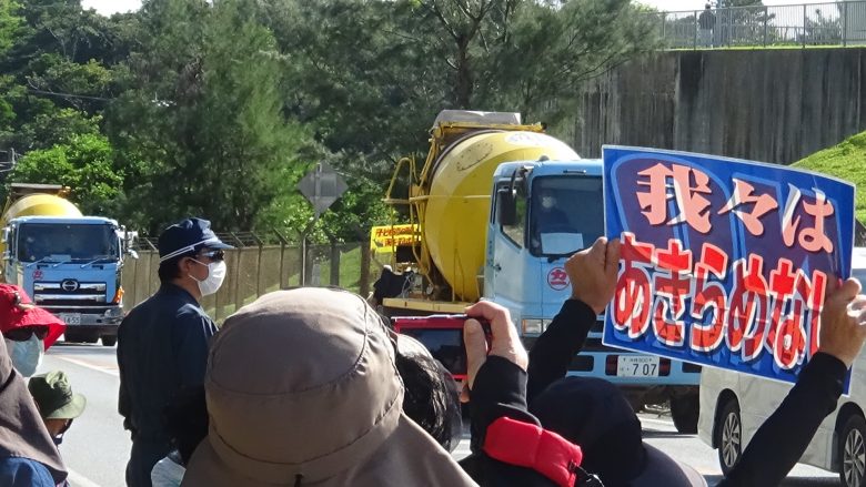 캠프 슈워브 공사장에서는 육상 공사가 하게되었다. 레미콘차 등 194대가 자재를 반입했다. 최다 때는 60명이 모여 연좌 농성했다. 기동대에 배제된 후도 시위 행진이나 구호 합창을 계속했다.