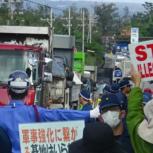 2년 걸려서 4%라면 단순한 계산으로는 50년 걸릴 것이니 기지 완성까지 13년이라는 정부의 속셈은 크게 빗나간다. 앞으로 4배 이상의 속도로 공사를 진행하지 않으면 13년이라는 목표에는 도저히 미치지 못할 것이다. 토사 채취지의 대부분이 오키나와현내로 변경되었다. 또한 단순한 계산이지만 4배의 속도로 공사를 가속하려면 이 접은 오키나와섬에 매일 4000대 이상의 덤프차가 모래 먼지를 말아 올리면서 뛰어다니게 된다. 있어서는 안 되는 광경이다.