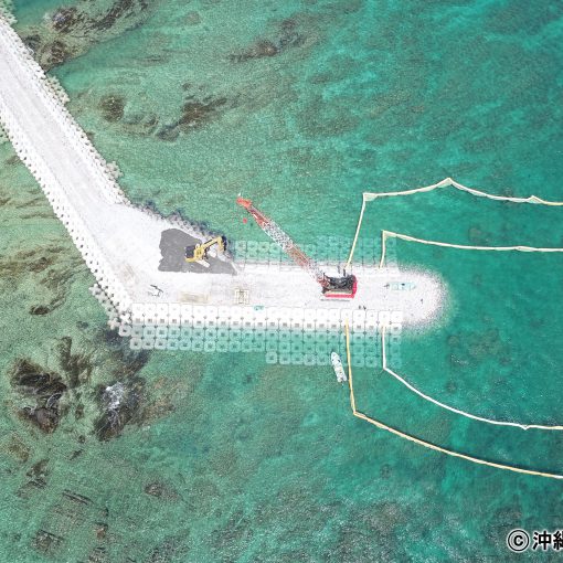 抗議船一艘,獨立舟8艘在海上進行抗議行動。為了不要讓土石卸下用的台板接駁船靠岸停泊,大家果敢地在接駁船四周行動,約30分左右在海上阻止了接駁船靠岸。這是第一次。