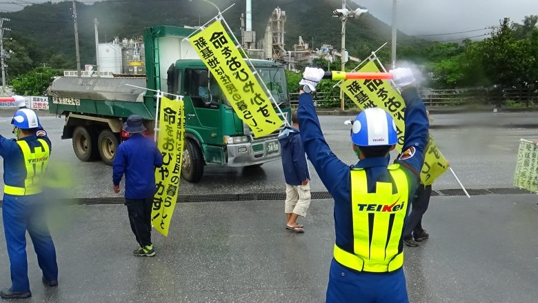"宇流麻"群島成員和日本山妙法寺僧侶以及基督教牧師等逾50名,早上8時左右集結於抗議現場,在滂沱大雨中擋在砂石車前阻止資材的運輸;等到機動隊抵達現場已經9 時40分左右,在這之前的施工作業成功的被阻止、呈現完全停擺的狀態。在這之後,砂石車在機動隊的戒護之下也僅有14輛進入施工地;中午過後、在抗議居民不多的時段,又再次地展開了砂石的搬運行動,但也僅持續到下午2時30分、共40輛左右的砂石車搬運量,便結束了當日的工程作業。這是居民即便頂著全身濕透的身軀仍頑強抗爭到最後"勝利的一天"啊!