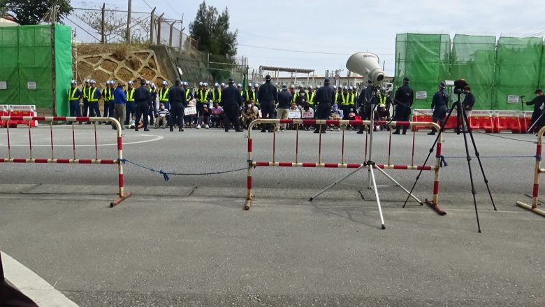 高峰時段約有40名參與者在基地前高聲抗議。目前正值新型冠狀病毒疫情肆虐,或許是擔心會遭受疫情感染,幾乎看不到來自日本本島抗議團隊的身影,僅10餘名是以個人名義持續參與。