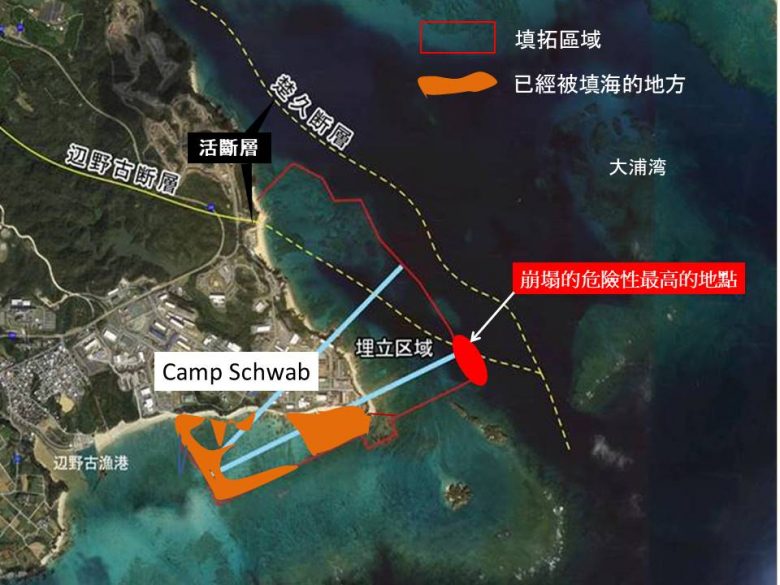 團隊是專攻地質和地層研究的大學教授組成的「沖繩邊野古調查團」。至今曾公開過大浦灣有兩條活斷層等,反覆指出新基地興建的問題點。軟弱地層在美國下議院軍事委員會的子委員會也被視為問題,安倍政權將被迫做出比至今為止更困難的應對。