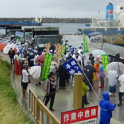 由於琉球水泥本業煤船,港埠無法使用,沒有砂石搬出。約20人分居出入口對砂石車進行抗議。GoGoDrive的成員有7台參加,延遲了砂石車的運行,讓數十輛持續被困在棧橋內。從採石場運來的865台車份的砂石被堆放在棧橋域內的暫存場。