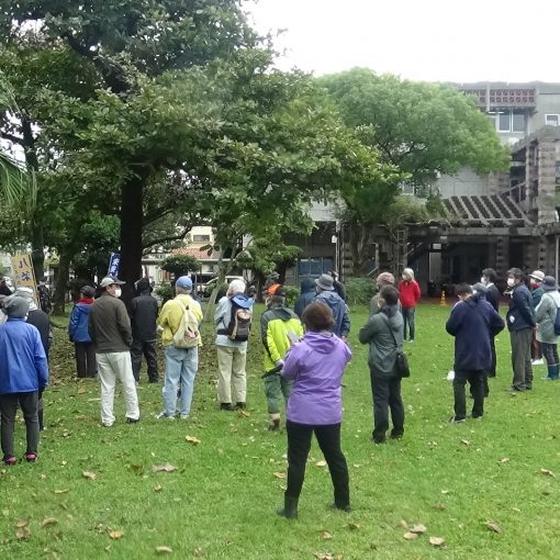 近70人在大門前靜坐,喊出抗議的聲音。本部町舉島上下鬥爭會議的核心成員高垣喜三(71歲)昨晚驟逝的消息傳來現場,與高垣先生有過交集的人們相繼發表哀悼的演說。高垣先生2011年從大阪移住本部町。頻繁地往來伊江島(Iejima),協助營運傳承被稱為「沖繩的甘地」的阿波根昌鴻先生事蹟的「わびあいの里」(反戰和平資料館)。2年後成為常任理事,不僅致力於推廣阿波根先生提倡的非暴力抵抗運動的精神,也親身實踐這個精神。在邊野古新基地問題上,他也站在作為砂石搬出現場的本部町的反對運動的最前線,組織了在塩川港的監控行動。得知訃報的沖繩和平運動中心的山城博治先生流著淚說道:「高垣先生與就算是立場迥異的砂石搬運業者也建立著關係,是個總是沈穩地發言的溫和的人。總之,他的離開讓我感到寂寞、很難受。」我們失去了一位執得託付的巨大支柱。4日,將於本部町舉行告別式。