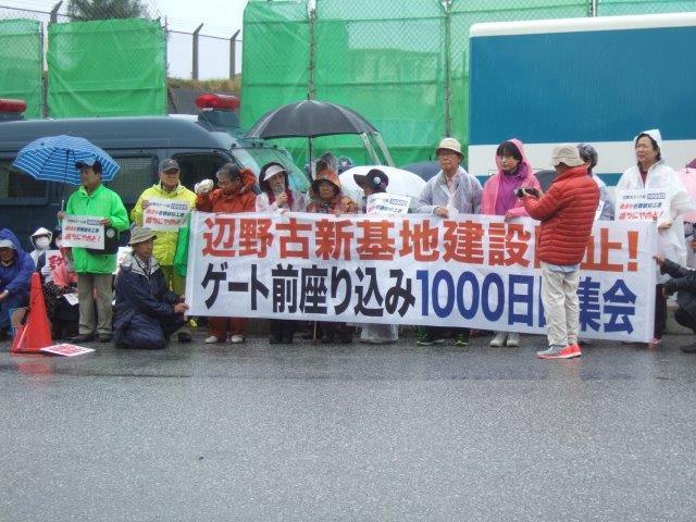 基地門前的靜坐抗議迎來了第1000天。