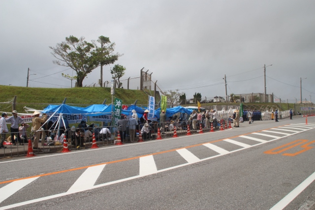 邊野古的施瓦布軍營(Camp Schwab)門前的靜坐抗議活動啟動。