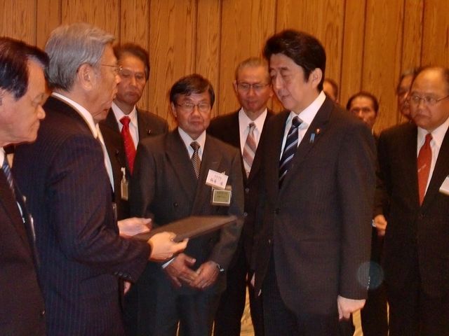 沖繩縣內41個市釘村長們向安倍首相提交了要求關閉普天間機場、放棄縣內遷移、撤回配備“魚鷹” 戰機的“請願書”。